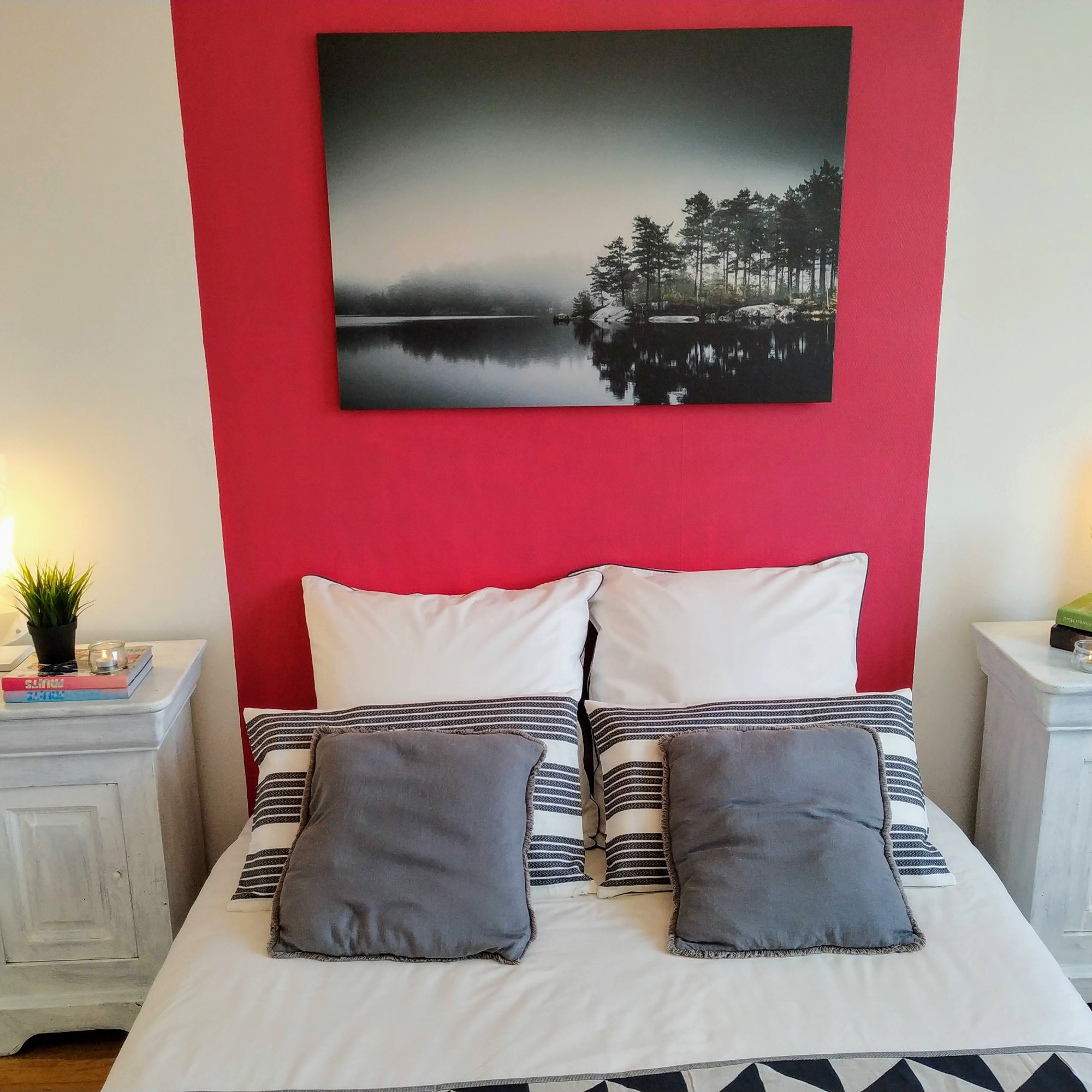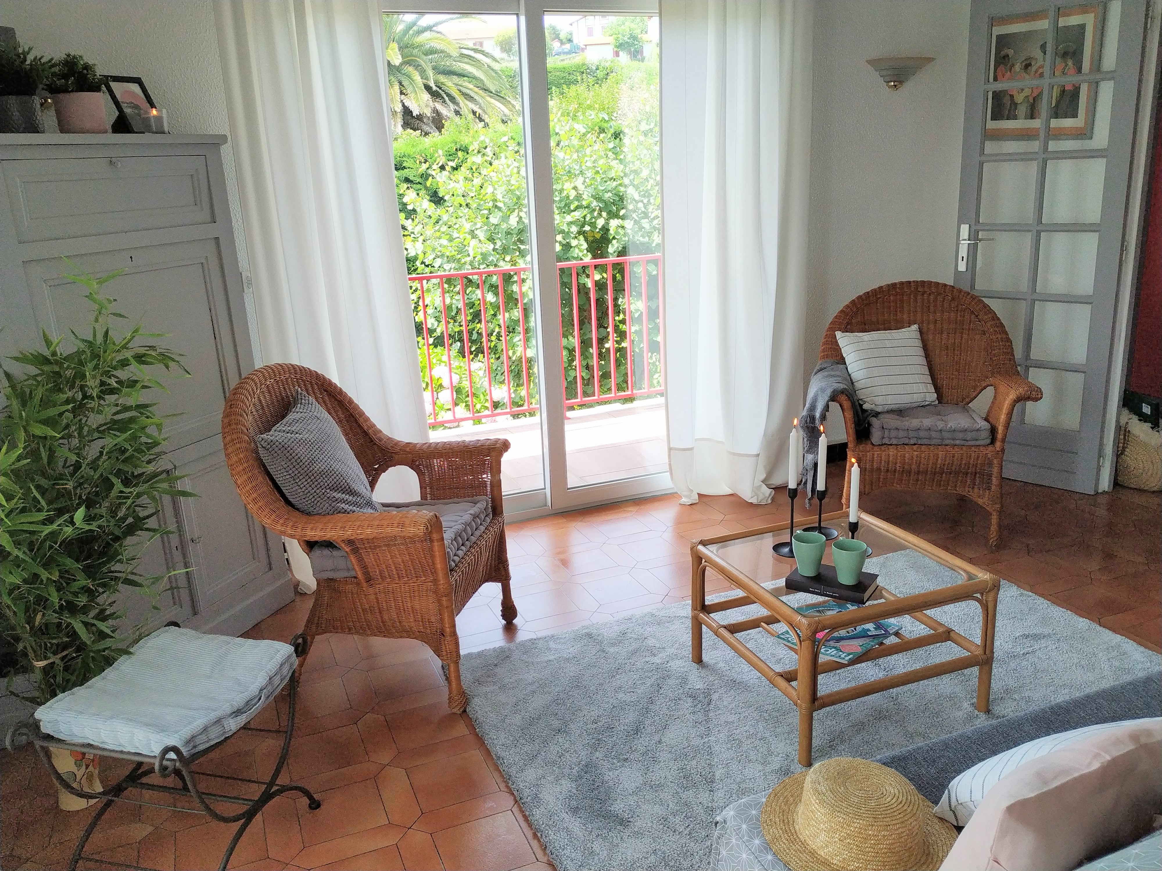 Un joli projet de Home Staging pour une maison à vendre à Bidart composée de 2 appartements de 90 et 70 m2. Une maison des années 70′ en bon état, mais au « charme désuet ». J’ai juste choisi de faire repeindre le couloir en blanc et nous avons décidé de garder les murs de couleurs dans certaines chambres (budget oblige). Il m’a fallu accentuer la luminosité, les grandes ouvertures et la vue incroyable sur les montagnes et le joli jardin arboré. Mon objectif : des pièces à la déco subtile et tendance avec un budget tout doux.