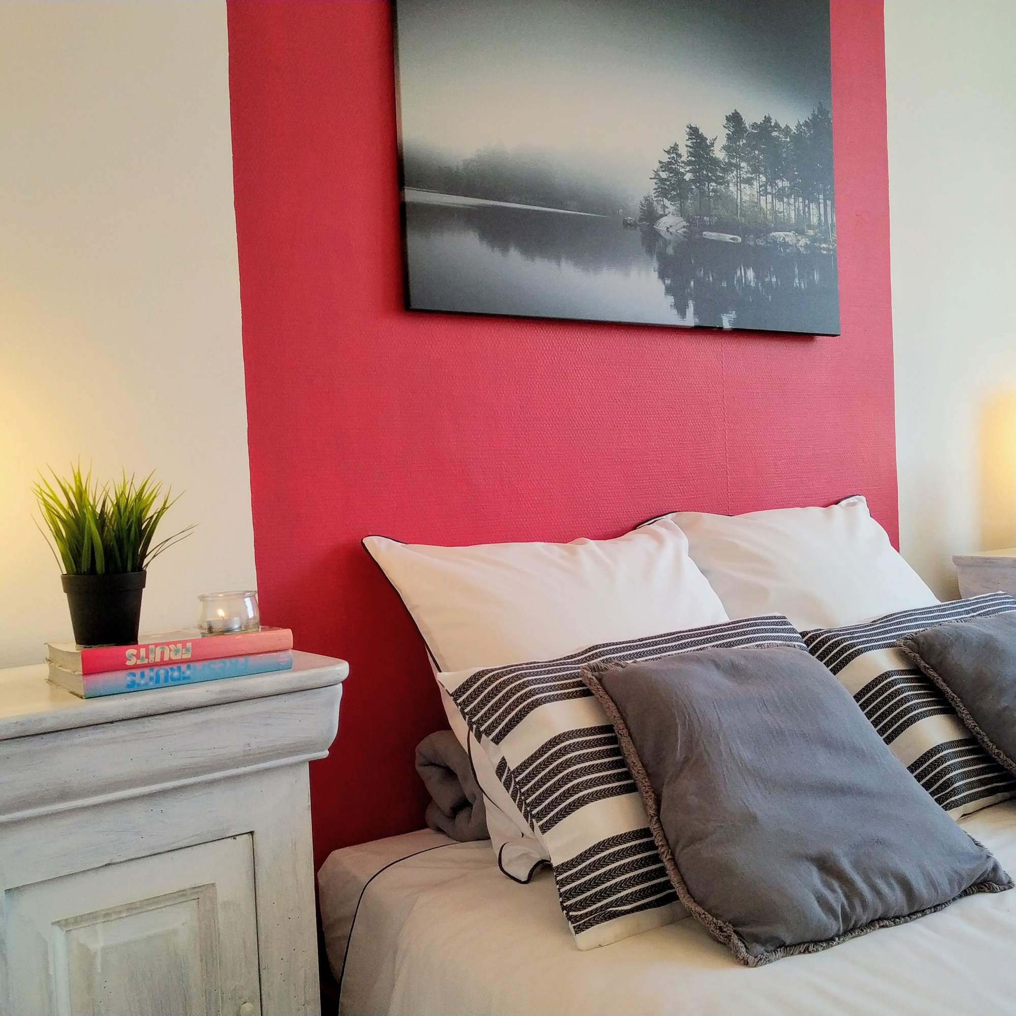 La chambre grise et rose :