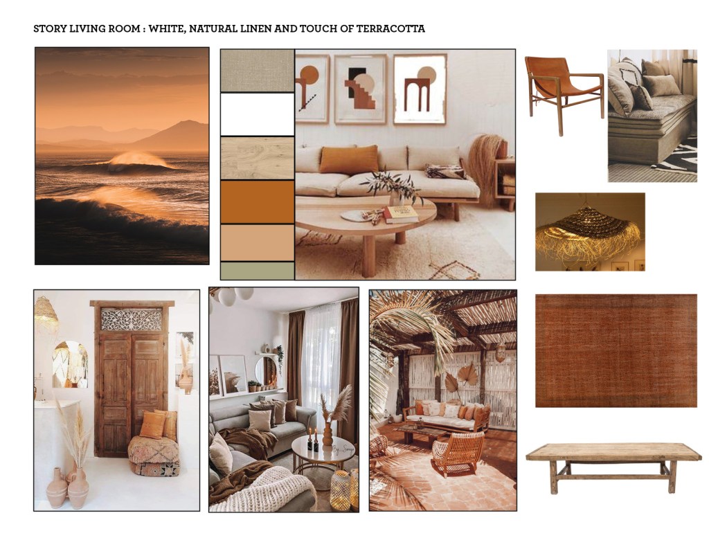 Je vous présente ici les planches tendances choisies par mes clients pour leur bel appartement à Biarritz, face à Marbella. Mes inspirations viennent de leurs photographies de @platoux (Jon Sanchez) et de leur histoire, entre Bali, le surf et la Suède. J’ai hâte de vous montrer le rendu final, mais voilà déjà un avant-goût des ambiances pour chaque pièce.