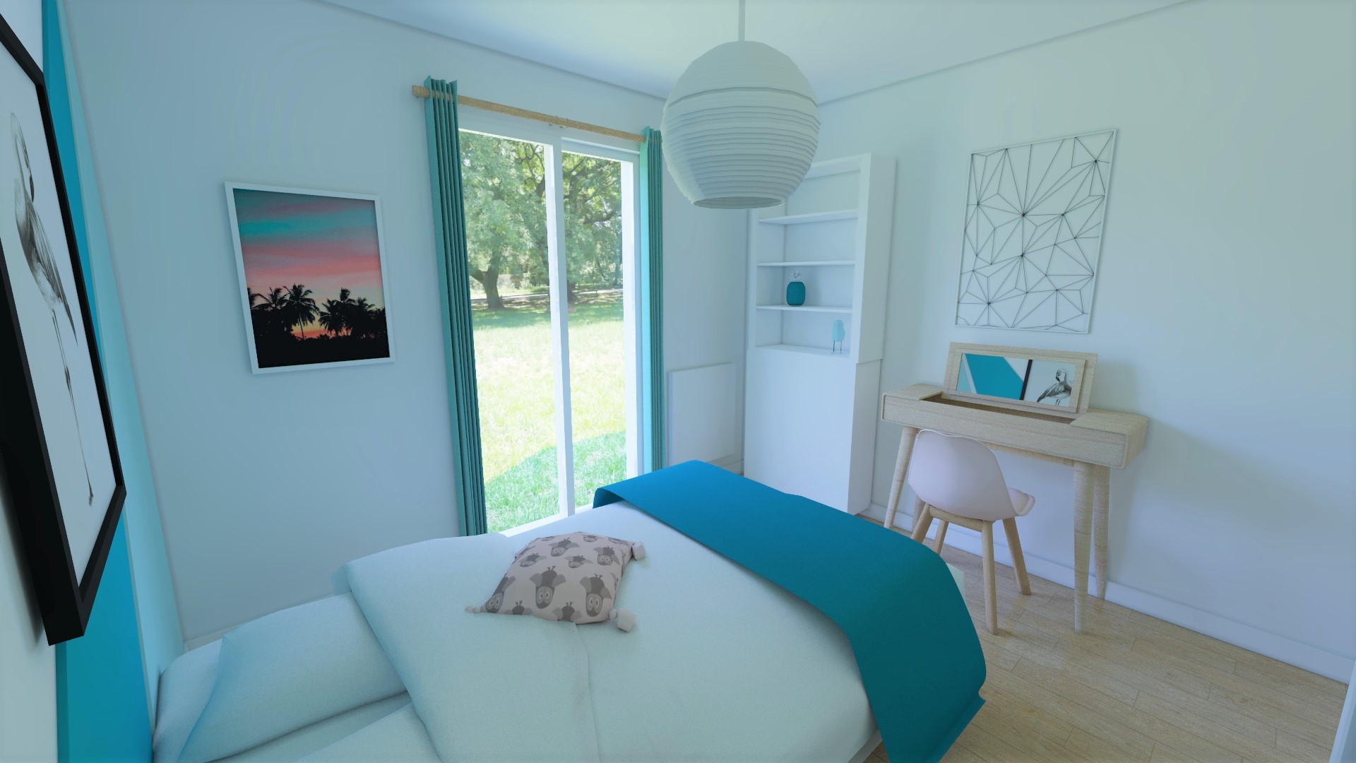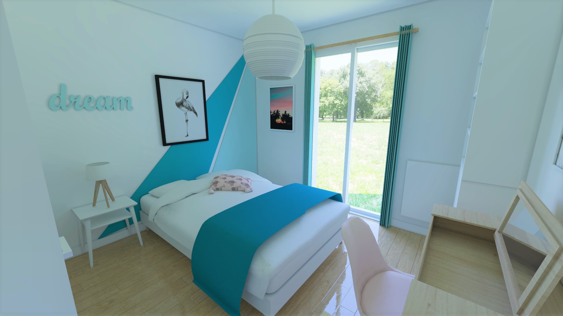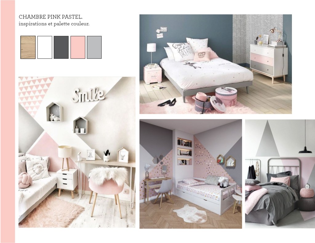 Ce nouveau projet nous amène à Socoa pour aménager entièrement la chambre d’une jeune fille. J’avais un budget très serré de 500€ pour une petite chambre avec des besoins précis de mobilier (lit double coffré, coiffeuse/bureau, bibliothèque) et des contraintes de rangements fermés. La chambre fait 10m2 avec un sol en chêne clair, les murs blancs et une belle luminosité. Après sondage de ses goûts (et dégoûts!), j’ai travaillé sur 2 ambiances couleurs : « cosy turquoise » (sa couleur favorite) réhaussé de bleu canard et de rose pâle ; et « pink pastel » autours des gris et roses plus doux. Ma jeune cliente a choisi le thème bleu d’inspiration scandinave.