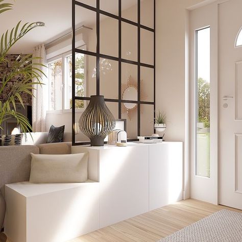 J’ai pensé et aménagé la pièce comme une « tiny house », ces mini-maisons scandinaves hyper optimisées, avec des rangements intelligents et des espaces bien différenciés. Le moindre recoin a été maximisé. Pour la décoration, je suis partie sur des matières naturelles claires avec des chênes miels et bruts, du béton ciré blanc pour accentuer la luminosité de la pièce, des lins blancs et naturels. Mes clients souhaitaient avoir un parement gris clair, une cloison style verrière et intégrer aussi une grande télévision. Beaucoup de paramètres qu’il a fallu intégrer intelligemment sans surcharger l’espace et en gardant une circulation fluide.