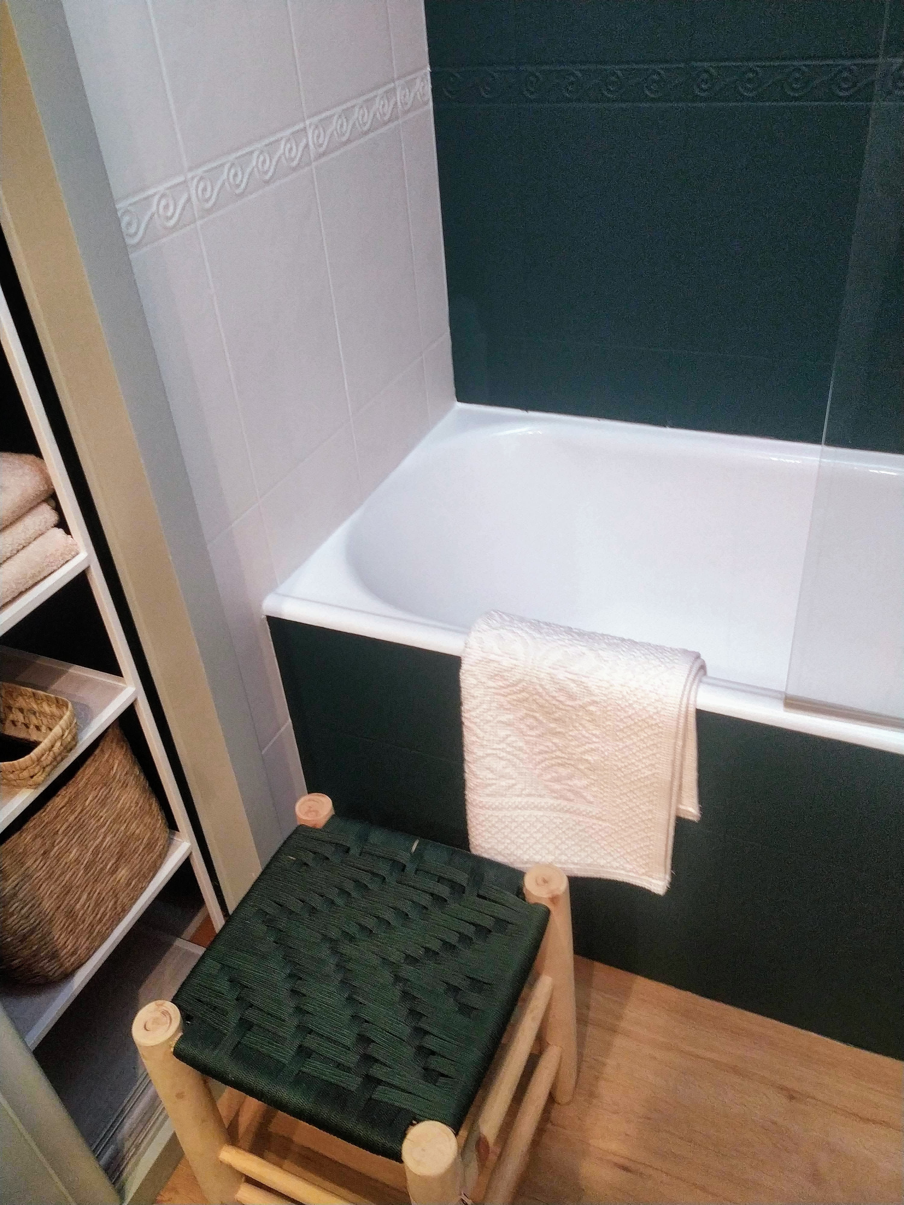 Décorer entièrement un appartement au coeur de Biarritz ; voilà un joli projet qui m’a fait rencontrer de belles personnes ! Avoir signé en février et être installés en avril, les heureux propriétaires ont été ravis de mon conseil et de mon accompagnement. Il a fallu travailler sur les plans, organiser les travaux (peintures, salle de bain et toilettes), choisir et commander tout le mobilier et les éléments de décoration, s’occuper de végétaliser le balcon. Le projet a été réalisé avec la boutique Acte 1 Biarritz. Au final, une prestation clé en main pour un bien cocooning à l’image des occupants. Nous avons choisi pour la pièce de vie et la chambre, des tonalités chaudes de terre cuite et nude, dynamisées par des verts : plongée assurée dans les arbres des jardins attenants ! Pour les salles d’eau, les verts se font plus doux et lumineux ; les toilettes deviennent un lieu à part, entièrement bleu encre, entre peinture de soubassement et papier peint sur les hauteurs et plafond.