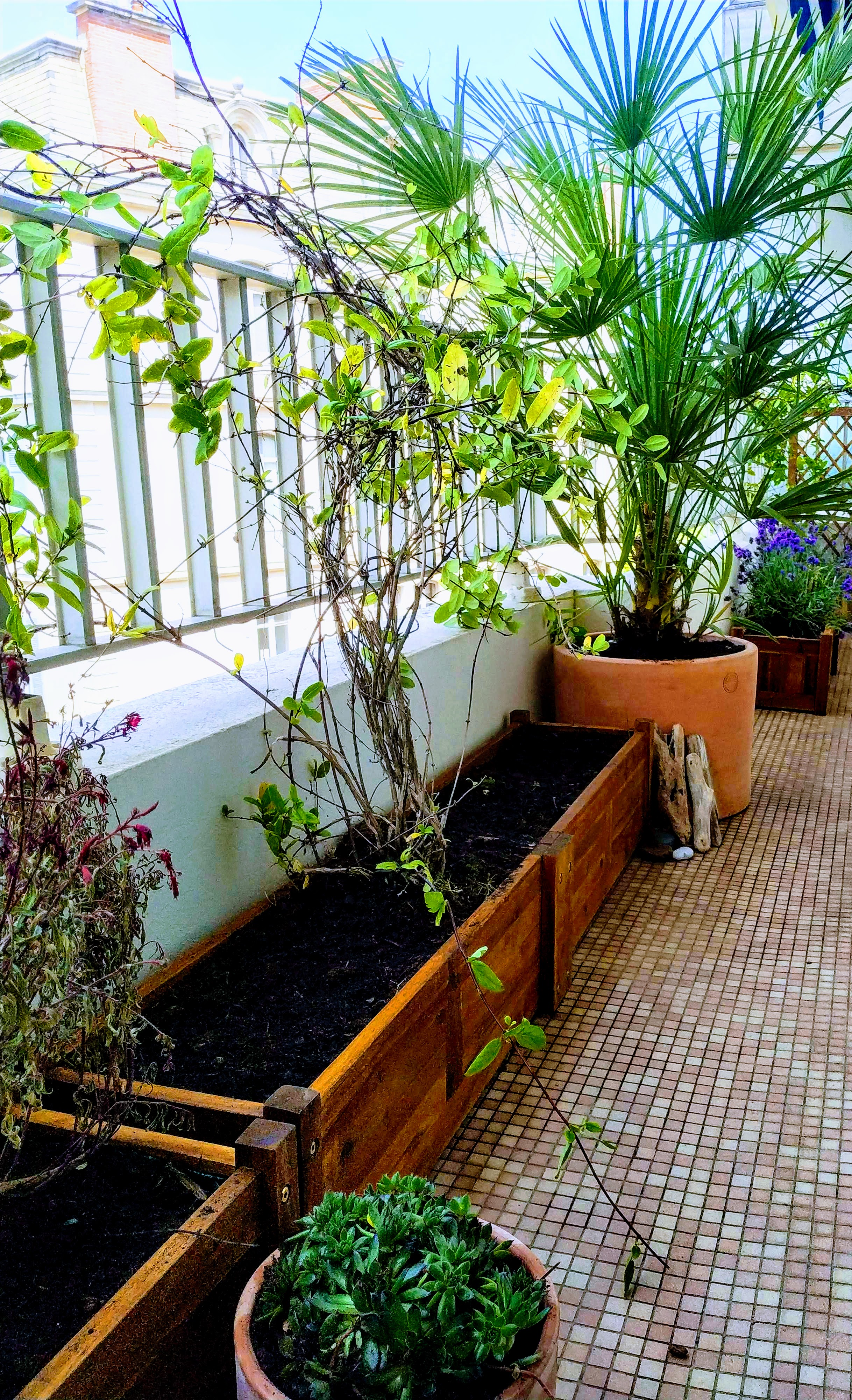 Photos après : le balcon avec Jardinerie Guichard et poteries Goicochea.