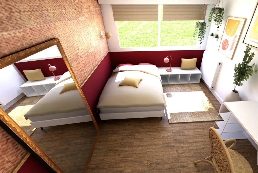 Pétillante chambre de jeune fille en Rose Indien, Jaune Pastel et Nude.