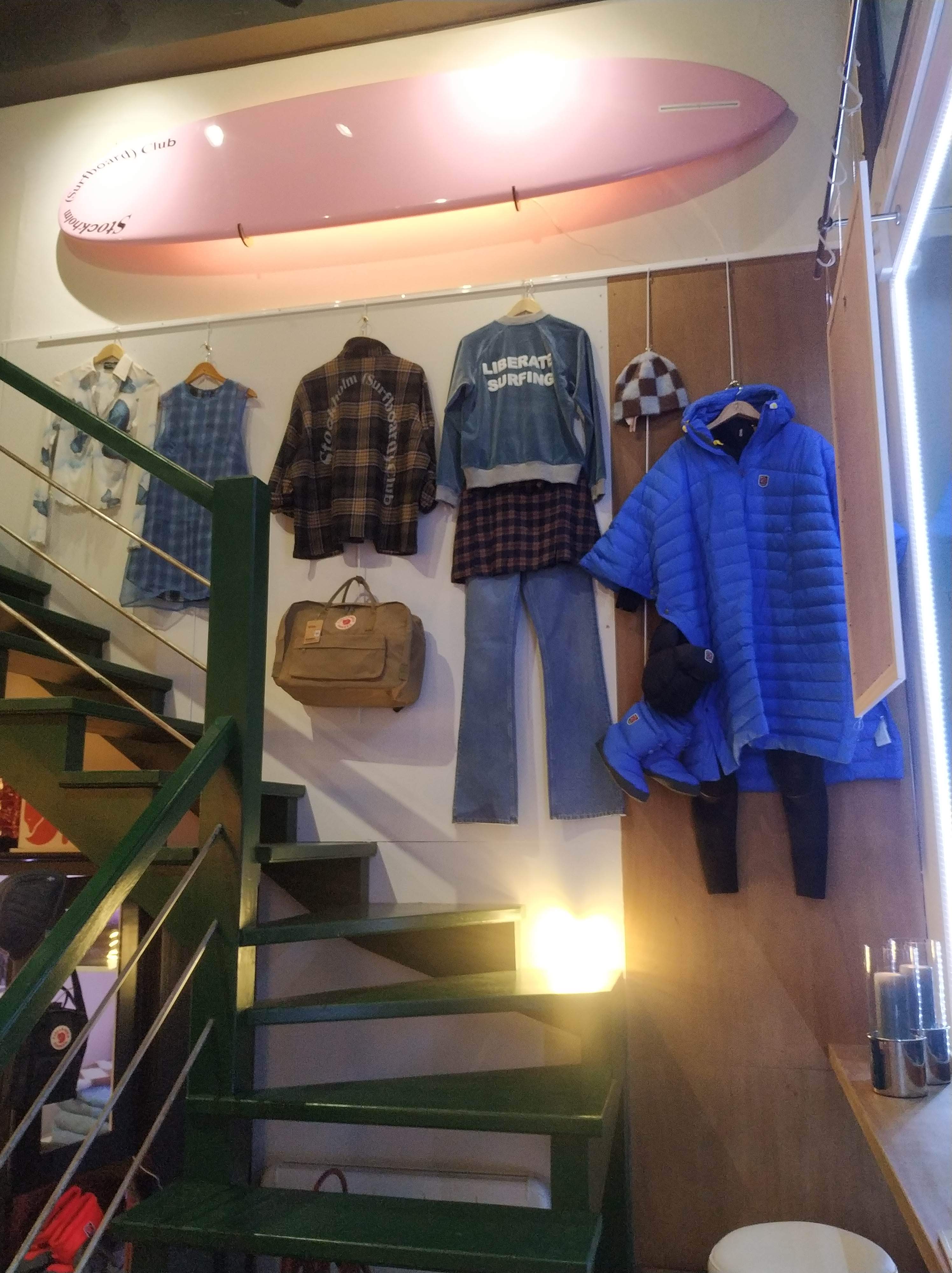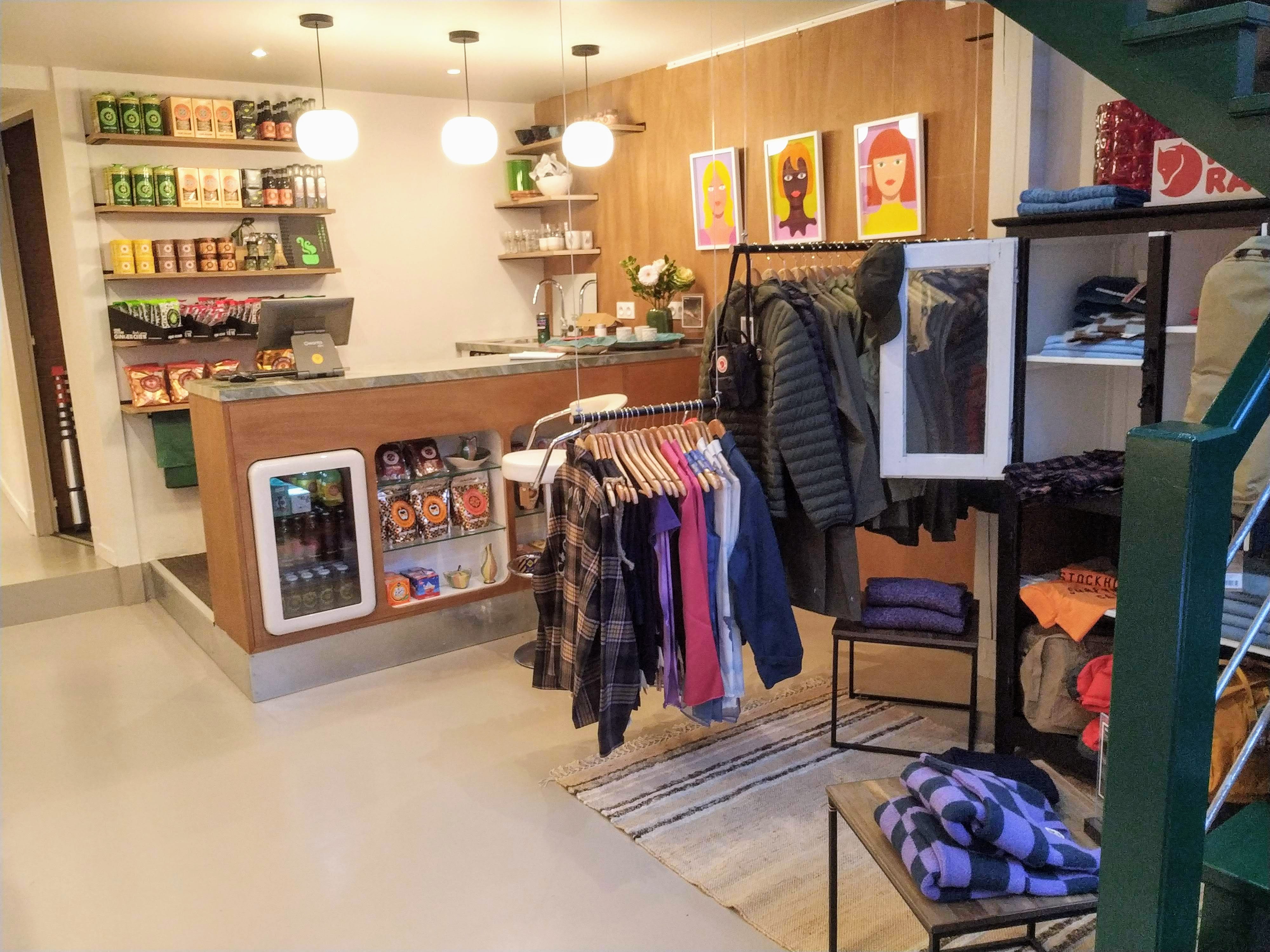 J’ai été sollicité par Eva et Pia – 2 suédoises, l’une ancienne championne de snowboard freeride et l’autre guide de haute montagne- pour les aider dans l’ouverture de ce nouveau lieu à Biarritz. Je me suis occupée des plans 3D d’aménagement, de la conception de la cabine d’essayage, de la recherche d’artisans et de l’installation des produits.